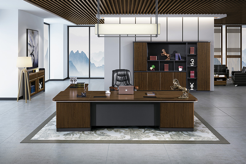 奢華不失穩(wěn)重的深胡桃色搭配與加厚工藝的形體設(shè)計(jì),同種材質(zhì)多元化展示,深淺兩色的雙色邊以妙筆生花之工創(chuàng)造律動(dòng)賦有層次感的辦公環(huán)境。